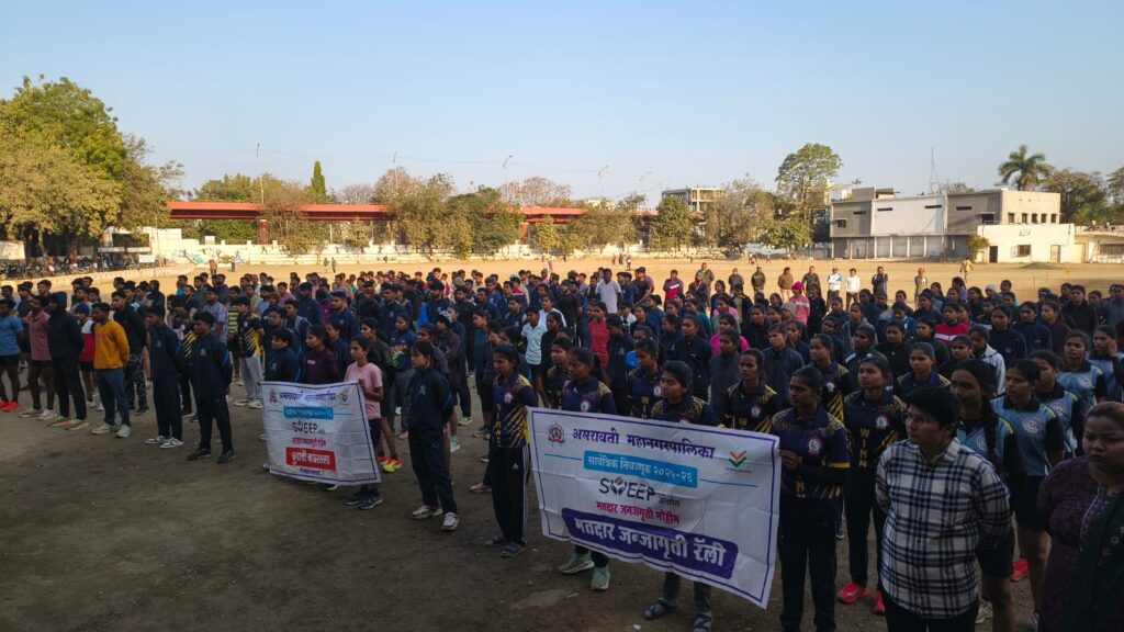 अमरावती महानगरपालिका सार्वत्रिक निवडणूक 2025-26 च्या पार्श्वभूमीवर नागरिकांमध्ये मतदानाबाबत जनजागृती निर्माण करण्याच्या उद्देशाने अमरावती महानगरपालिका प्रशासनाच्या वतीने शनिवार, दिनांक 10 जानेवारी 2026 रोजी भव्य मतदान जनजागृती रॅलीचे आयोजन करण्यात आले. ही रॅली अत्यंत उत्साहात, शिस्तबद्ध व शांततेत यशस्वीरीत्या पार पडली. निवडणूक अधिकारी तथा महानगरपालिका आयुक्त सौम्या शर्मा चांडक यांच्या मार्गदर्शनाखाली दुपारी 3 वाजता दसरा मैदान