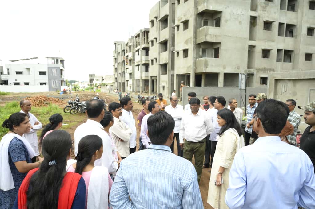 नवसारी व रहाटगाव येथील प्रधानमंत्री आवास योजनेच्या बांधकाम पाहणीदरम्यान आयुक्त सौम्या शर्मा चांडक यांनी निर्देश की, कामाची गुणवत्ता सर्वोच्च ठेवावी. बांधकामामध्ये दर्जेदार साहित्याचा वापर करून कुठलाही निकृष्ट दर्जाचा वापर होऊ नये. निर्धारित मुदतीत प्रकल्प पूर्ण करावा. लाभार्थ्यांना वेळेत घरे मिळावीत यासाठी कामकाज गतीने व नियोजनबद्ध पद्धतीने पार पाडावे. नियमित आढावा घ्यावा. संबंधित अभियंते व कंत्राटदारांनी दर आठवड्याला प्रगती अहवाल सादर करावा. पायाभूत सुविधा प्राधान्याने उपलब्ध कराव्यात. रस्ते, पाणीपुरवठा, स्वच्छतासुविधा यावर विशेष लक्ष केंद्रित करावे. लाभार्थ्यांचा विश्वास अबाधित ठेवावा. ही घरे गरजू व निम्नआय वर्गीय कुटुंबांची स्वप्ने पूर्ण करणारी आहेत, त्यामुळे प्रत्येक कुटुंबाला सुरक्षित व दर्जेदार घर मिळाले पाहिजे.