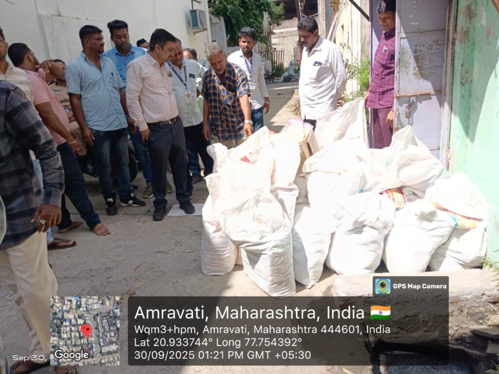 अमरावती महानगरपालिकेच्या स्वच्छता विभागाने राजापेठ झोन क्र. ०२, प्रभाग क्र. ०७ मधील जवाहर स्टेडियम परिसरात विशेष प्लास्टिक जप्ती मोहिमेचे आयोजन केले. या कारवाईदरम्यान २३५ किलो प्रतिबंधित प्लास्टिक पिशव्या, डिस्पोजल ग्लास आणि चमचे जप्त करण्यात आले. प्लास्टिकचा साठा केल्याबद्दल आस्थापनाधारकावर १०,००० रुपये दंड ठोठावण्यात आला.