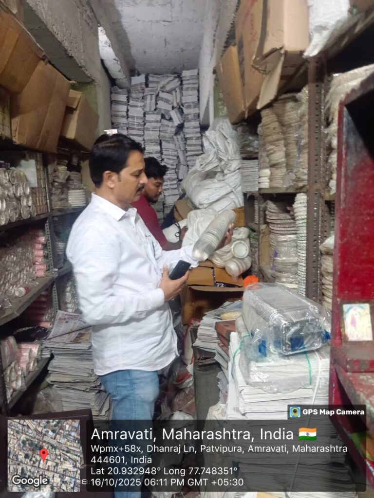 अमरावती महानगरपालिकेतर्फे स्वच्छता आणि पर्यावरण संरक्षणाच्या उद्देशाने राबविण्यात येत असलेल्या प्लास्टिक बंदी मोहिमेला गती देण्यात आली आहे. आयुक्त सौम्या शर्मा चांडक यांच्या निर्देशानुसार आणि अतिरिक्त आयुक्त शिल्पा नाईक यांच्या मार्गदर्शनाखाली १६ आणि १७ ऑक्टोबर २०२५ रोजी सक्करसाथ आणि सराफा परिसरात मोठ्या प्रमाणावर जप्ती मोहीम राबविण्यात आली.