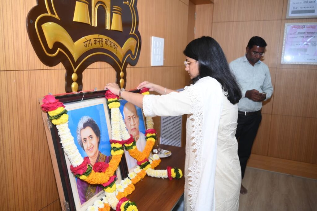 महानगरपालिका आयुक्त सौ. सौम्या शर्मा चांडक यांच्या हस्ते इंदिरा गांधी आणि सरदार पटेल यांच्या प्रतिमांना पुष्पहार अर्पण करून अभिवादन करण्यात आले. हा कार्यक्रम महानगरपालिका मुख्यालयातील कॉन्फरन्स हॉलमध्ये पार पडला.