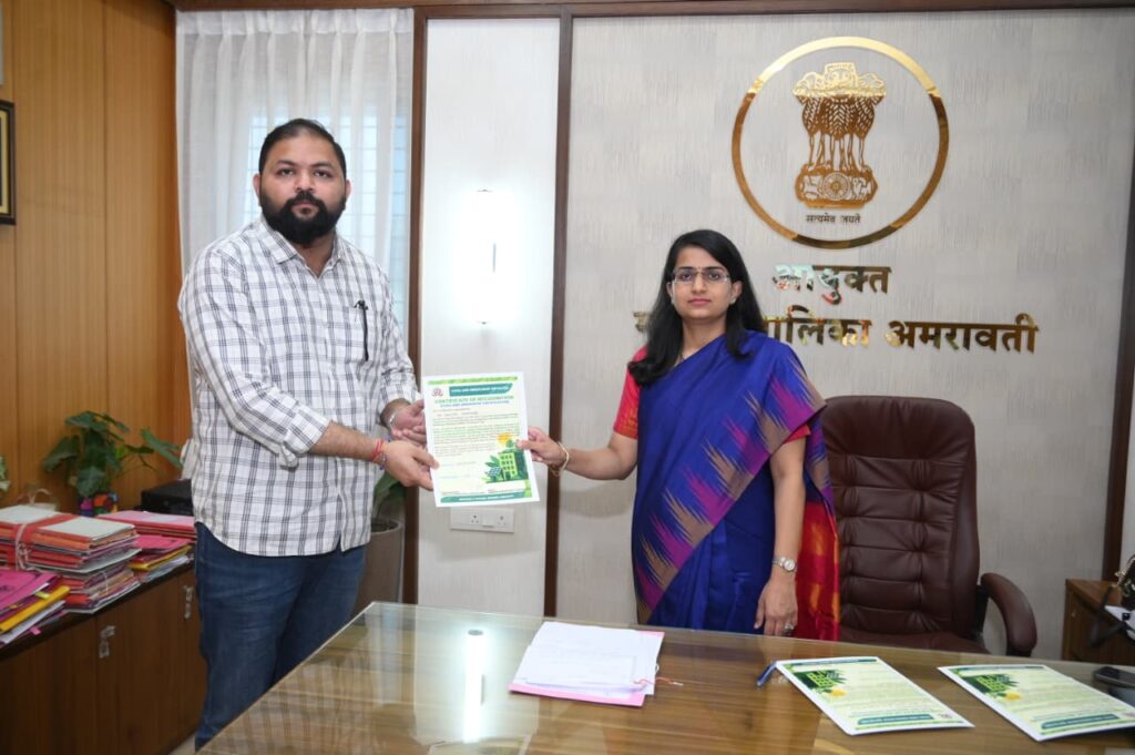 अमरावती शहरात हवामान लवचिकता आणि शाश्वतता वाढवण्यासाठी कूल रूफ तसेच ग्रीन बिल्डिंग पद्धतींचा प्रभावी अवलंब करणाऱ्या बिल्डरांचा महानगरपालिका आयुक्त सौम्या शर्मा चांडक यांच्या हस्ते सत्कार करण्यात आला.