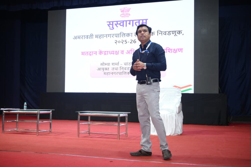 अमरावती महानगरपालिका सार्वत्रिक निवडणूक २०२५ ही पारदर्शक, निर्भय व शांततापूर्ण वातावरणात पार पडावी, या उद्देशाने मतदान प्रक्रियेत सहभागी असणाऱ्या मतदान केंद्राध्यक्ष व मतदान अधिकारी (१, २ व ३) यांच्यासाठी विशेष प्रशिक्षण कार्यक्रमाचे आयोजन करण्यात आले.