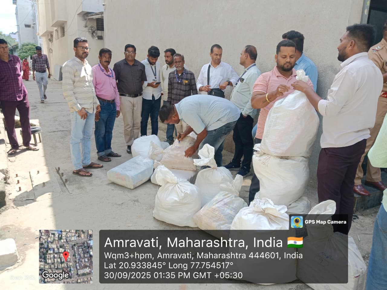 “प्लॅस्टिकमुक्त अमरावती” अभियानाला गती देण्यासाठी ७ ऑक्टोबर २०२५ रोजी अमरावती महानगरपालिकेने कडवी बाजार परिसरात मोठ्या प्रमाणावर तपासणी मोहीम राबवली. या कारवाईदरम्यान मनपाच्या संयुक्त पथकाने बंदी