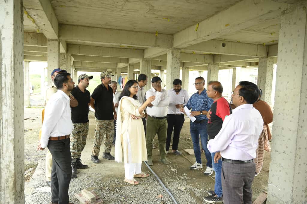प्रधानमंत्री आवास योजनेच्या बांधकामाची महानगरपालिका आयुक्‍त सौम्‍या शर्मा चांडक यांची पाहणी